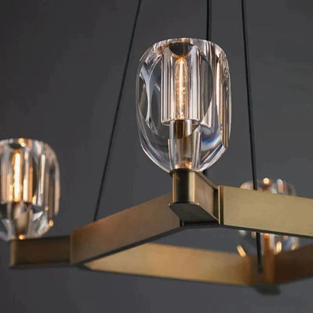 he Brenner Contemporary 4-Lights Dining Square Chandelier is machined from solid brass. the crystal shades are clear and well cut, the surface of the crystal shades are smooth and pure. It is with the contemporary look chandelier, if you are decorating a modern home, this design is just made for you.
